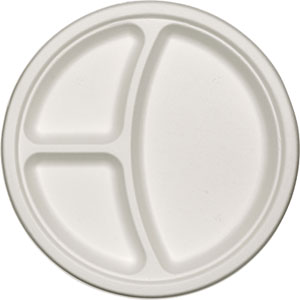 Tallrik 3-fack 26x2cm Naturvit 500p bagasse