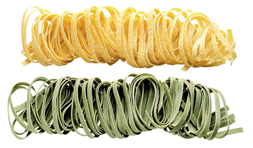 Äggpasta: Durumvete och färska ägg av klass A från frigående höns 33.5 %. Äggpasta med spenat: Durumvete. färska ägg av klass A från frigående höns 24 %. spenatblad 20 %. Kan innehålla spår av soja och senap.